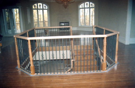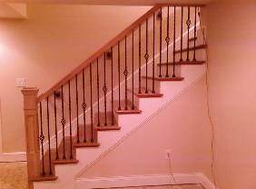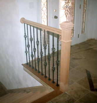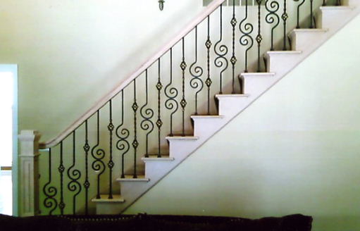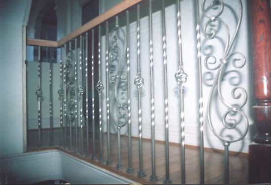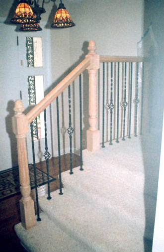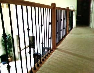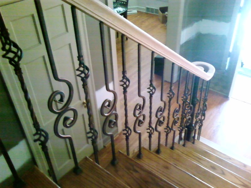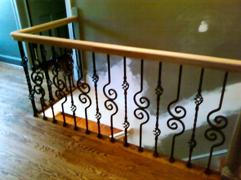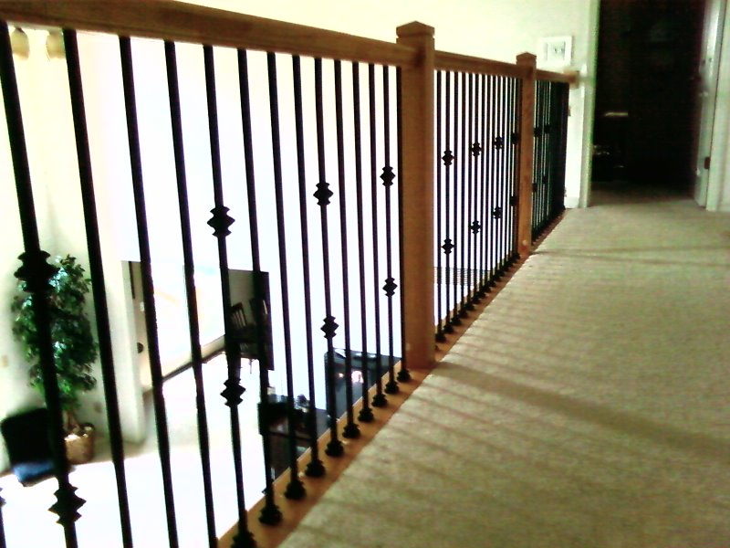 examples of metal balusters and wood handrail