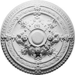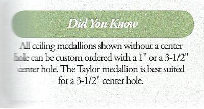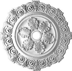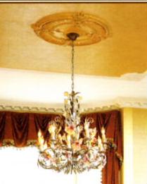 | Looking for an easy way to add elegance and style to any room? The answer--Ceiling Medallions. There are numerous styles and sizes to choose from and the installation is simple. Made from polyurethane foam, these medallions are the descendant of the old plaster version. But technology has moved on and today we have lightweight medallions with incredible detail and depth of design. Whether you use them to highlight chandeliers, lighting fixtures, ceiling fans or just your ceiling, they are a great addition to any room. So be sure to stop by our showroom and take a look. |